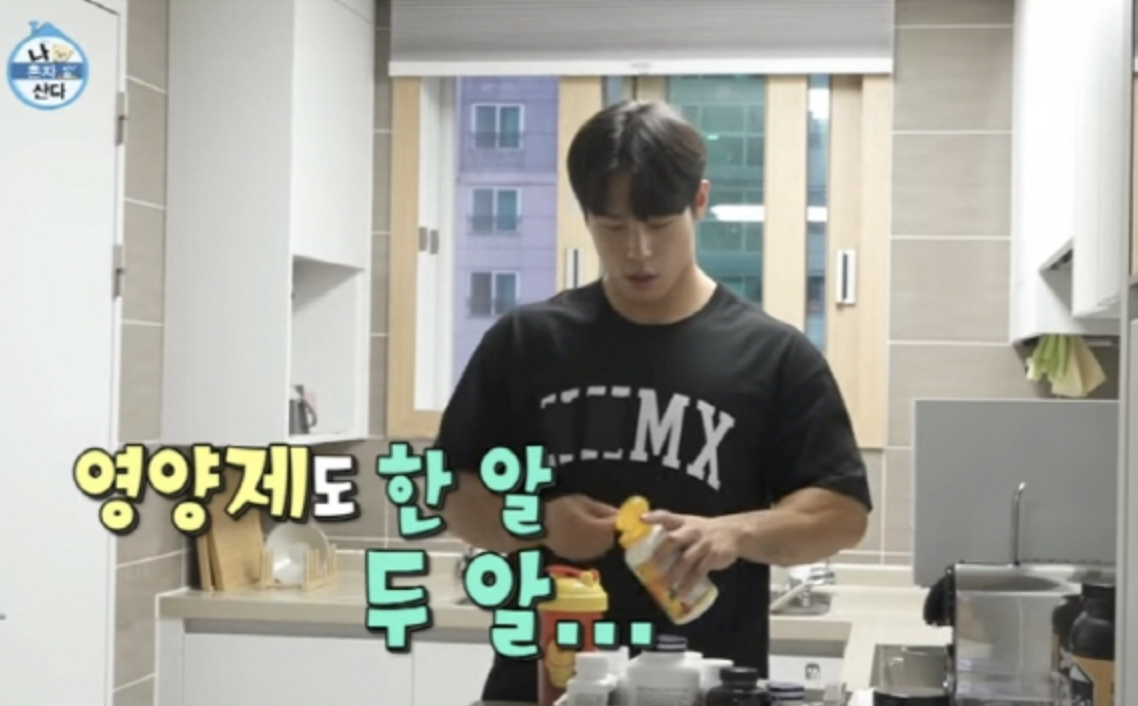 피지컬 최강자로 알려진 그는 아침 식사 후에 위와 같은 영양제를 챙겨 먹는 모습이 최근 '나 혼자 산다' 프로그램을 통해 공개되었습니다. 그는 평생 한 번도 체지방 10%를 넘어간 적이 없다고 언급하여 화제가 되었다.